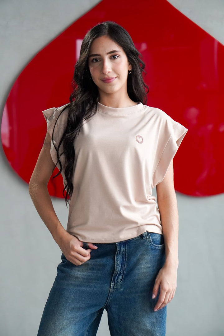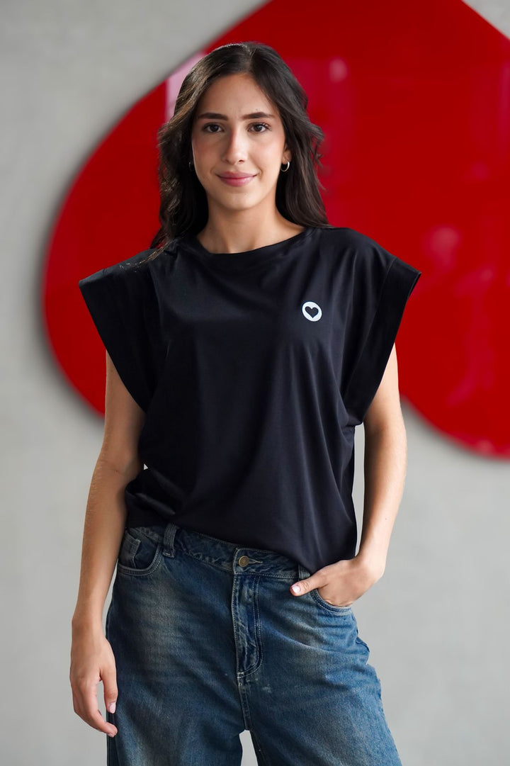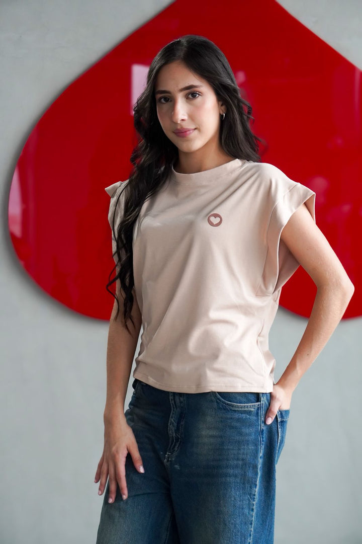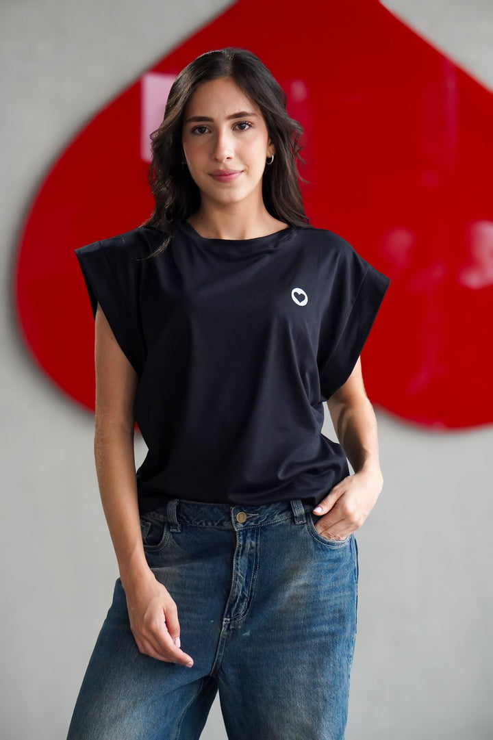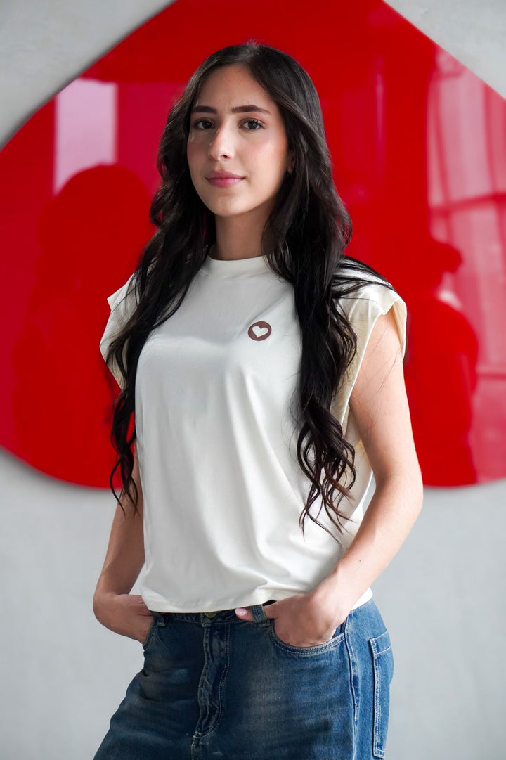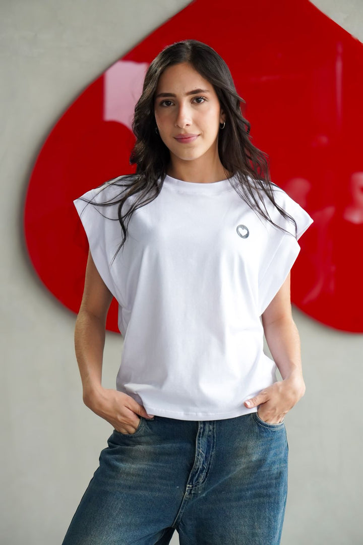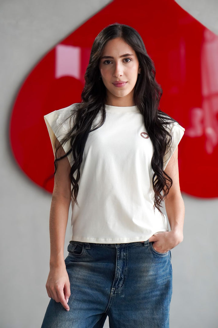 Camiseta Cajón Manga Rodada confeccionada en licra de algodón, disponible en talla única y colores Blanco, Negro, Habano y Crudo.