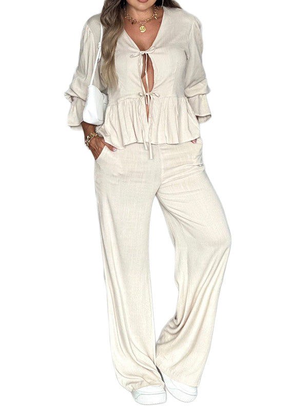 Set pantalon y blusa Fit wide leg y Caída Elegante Para Uso Diario