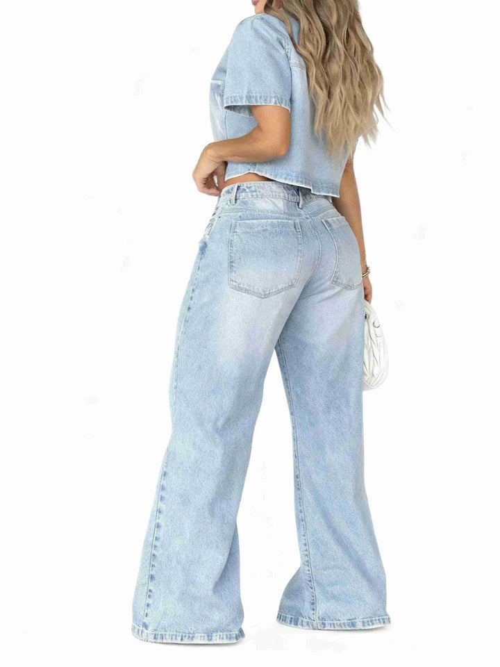 Set Jean Mom Flare y Blusa, Fit Ancho y Caída Elegante Para Uso Diario