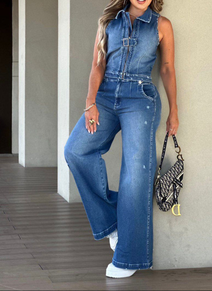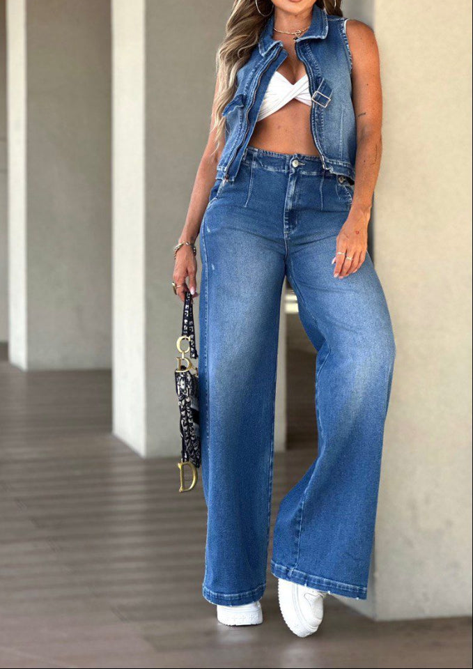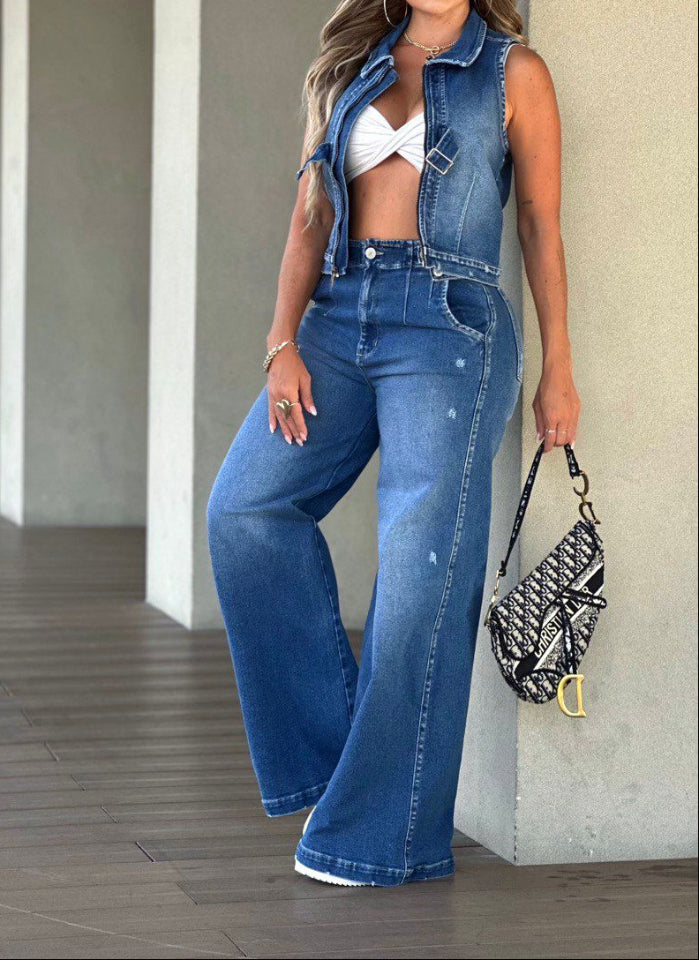 Set Jean con straple, Fit Ancho EN BOTA RECTA y Caída Elegante Para Uso Diario