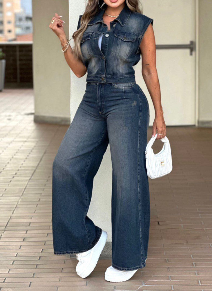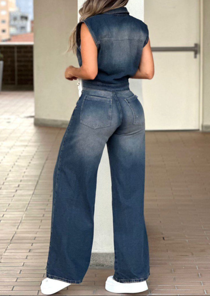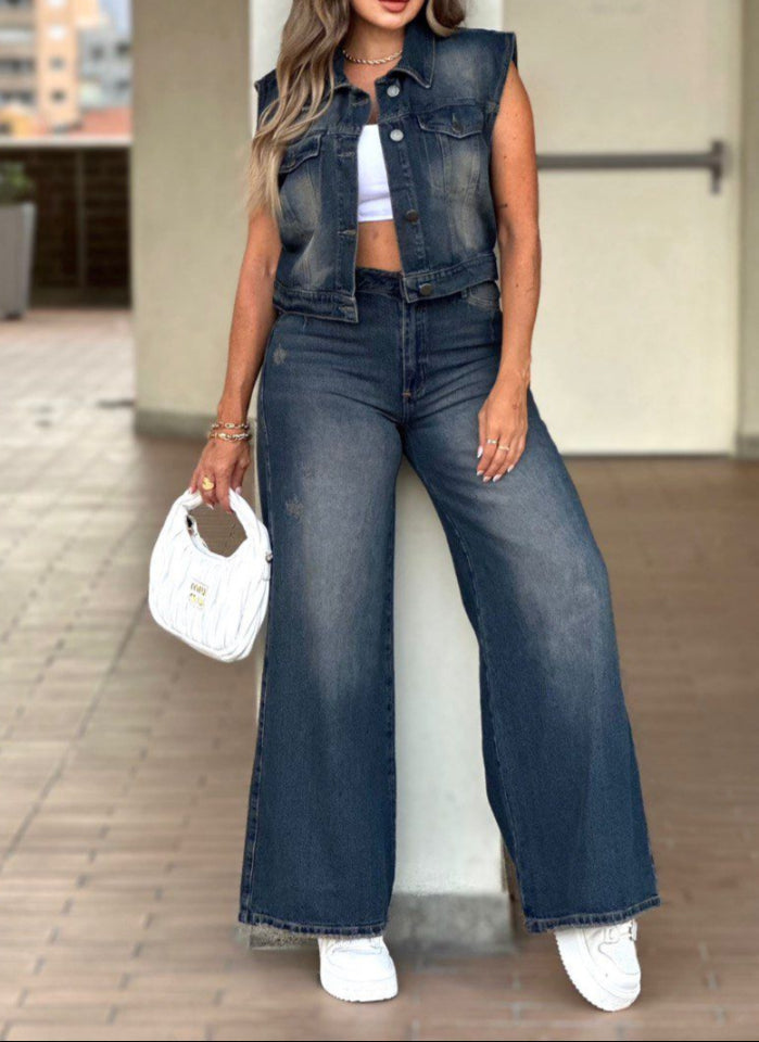 CONJUNTO JEAN WIDE LEG Y CHALE - AS06538