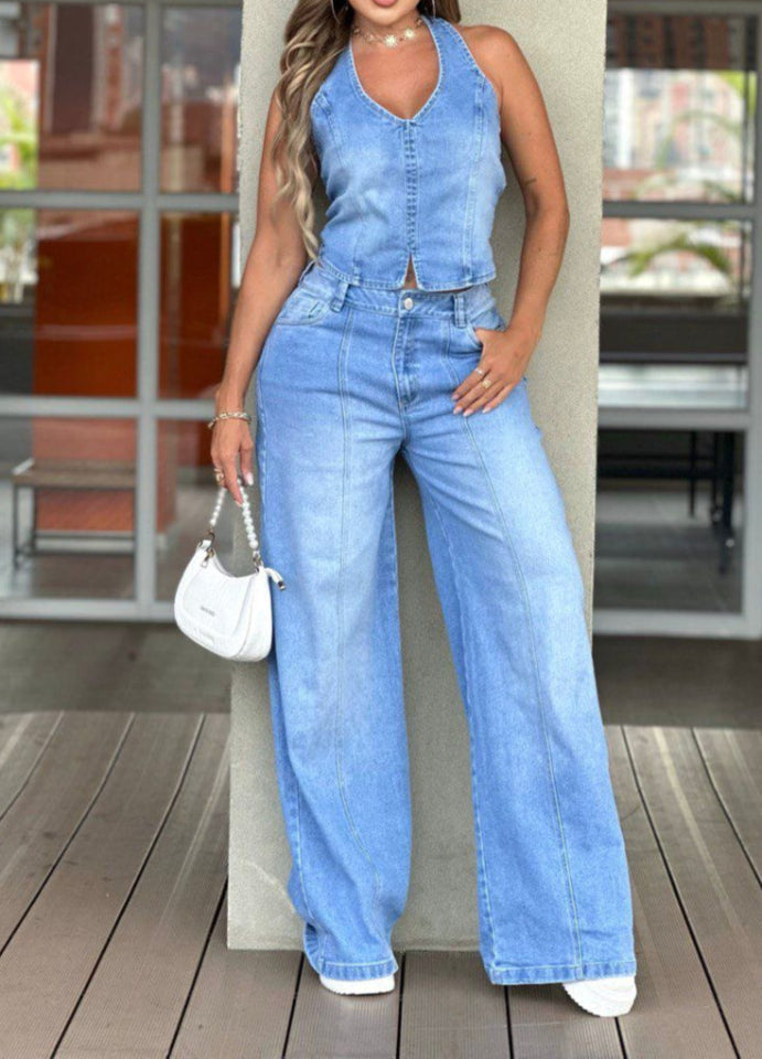 Conjunto en Denim Stretch con Fit Ancho y Caída Elegante Para Uso Diario |
