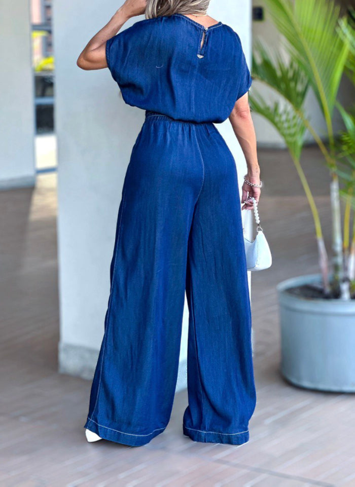 Conjunto de pantalón Wide Leg y blusa confeccionado en suave chambray tencel, con detalles exclusivos que lo hacen único y especial.