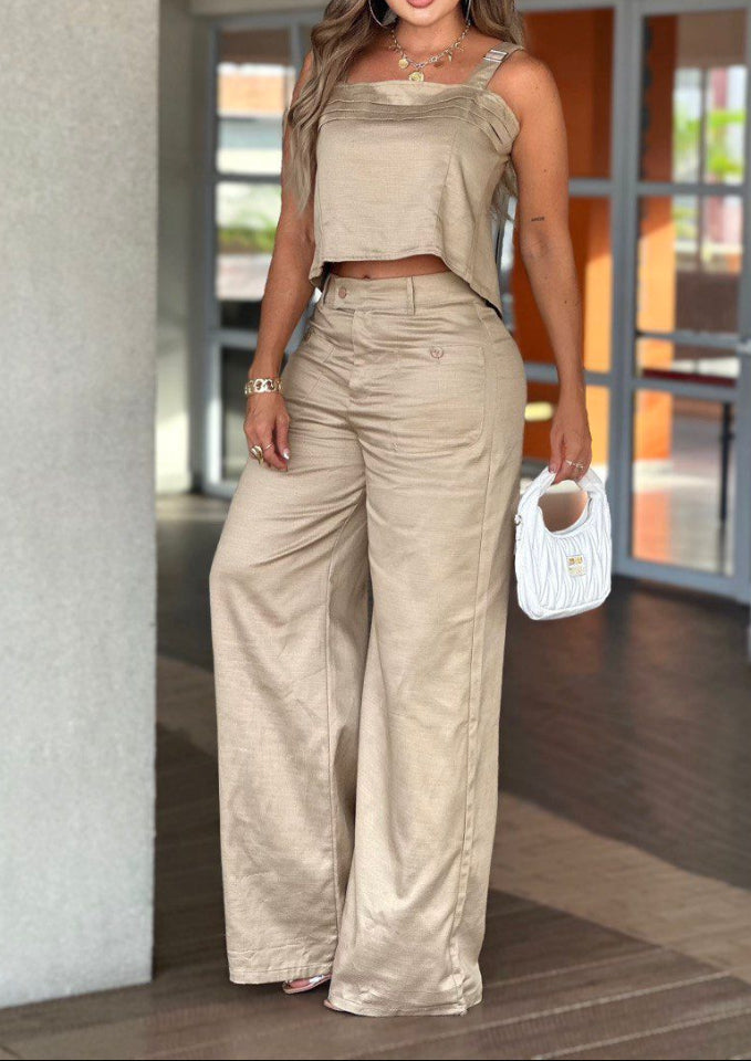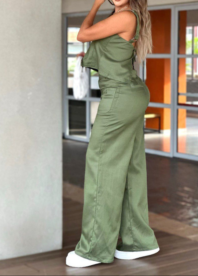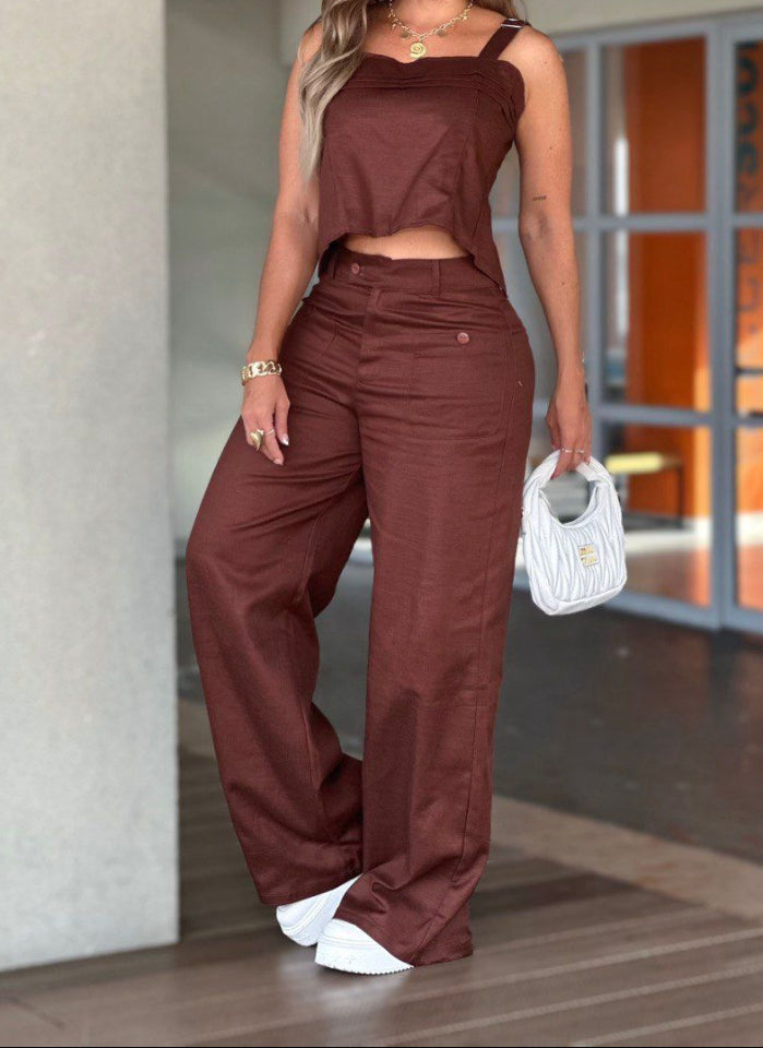 Set pantalon y blusa Fit Ancho y Caída Elegante Para Uso Diario