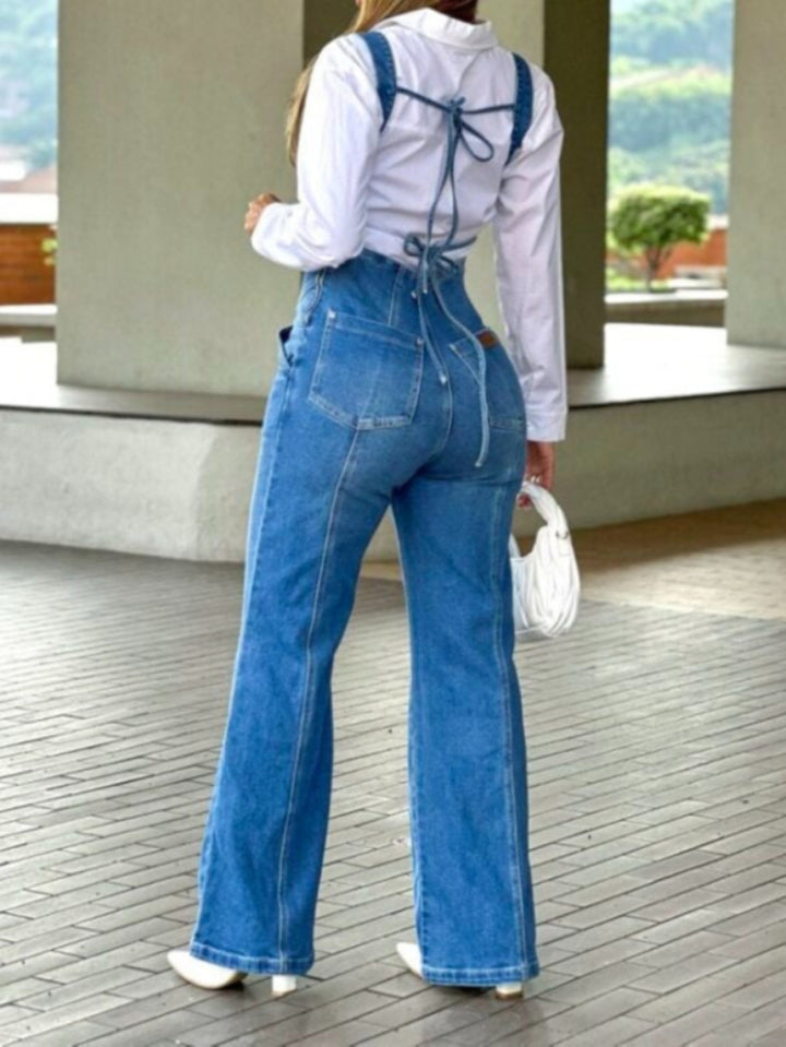 Enterizo bota recta en denin confort stretch con Fit Ancho y Caída Elegante Para Uso Diario |