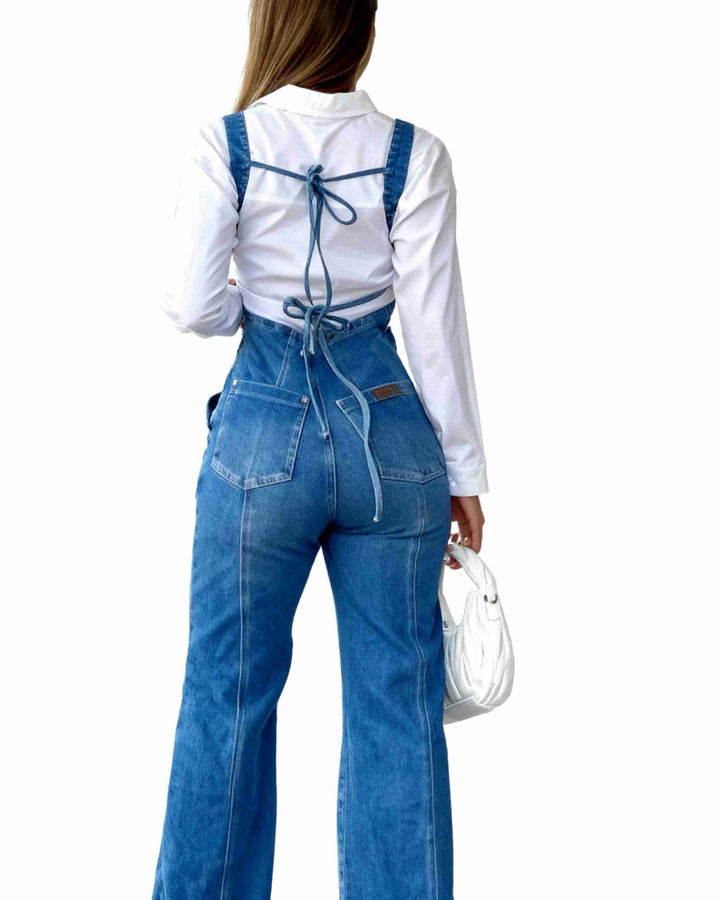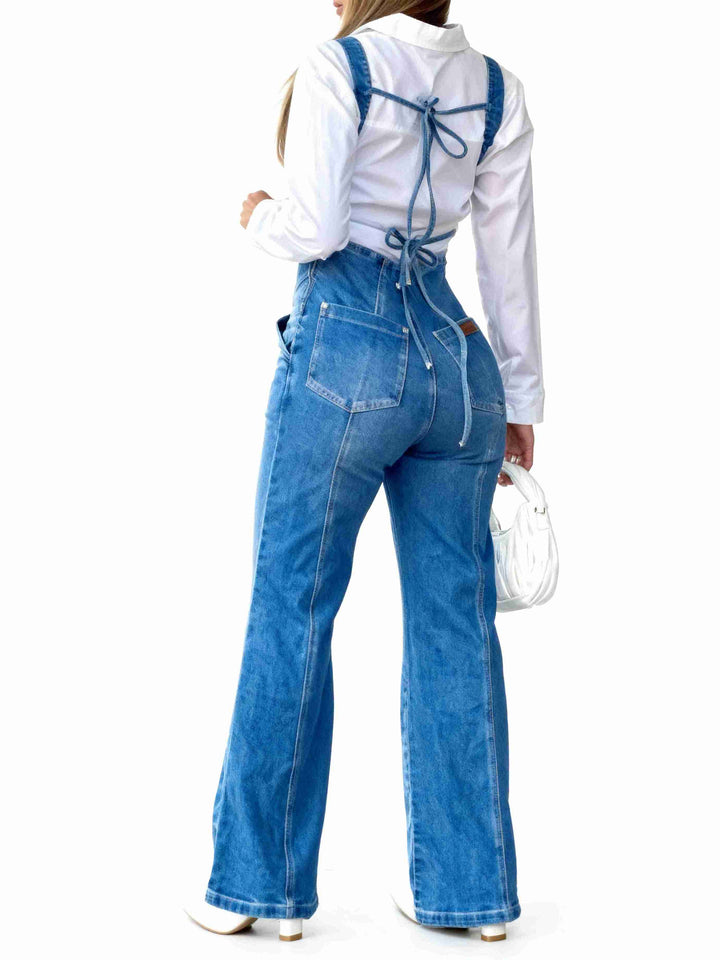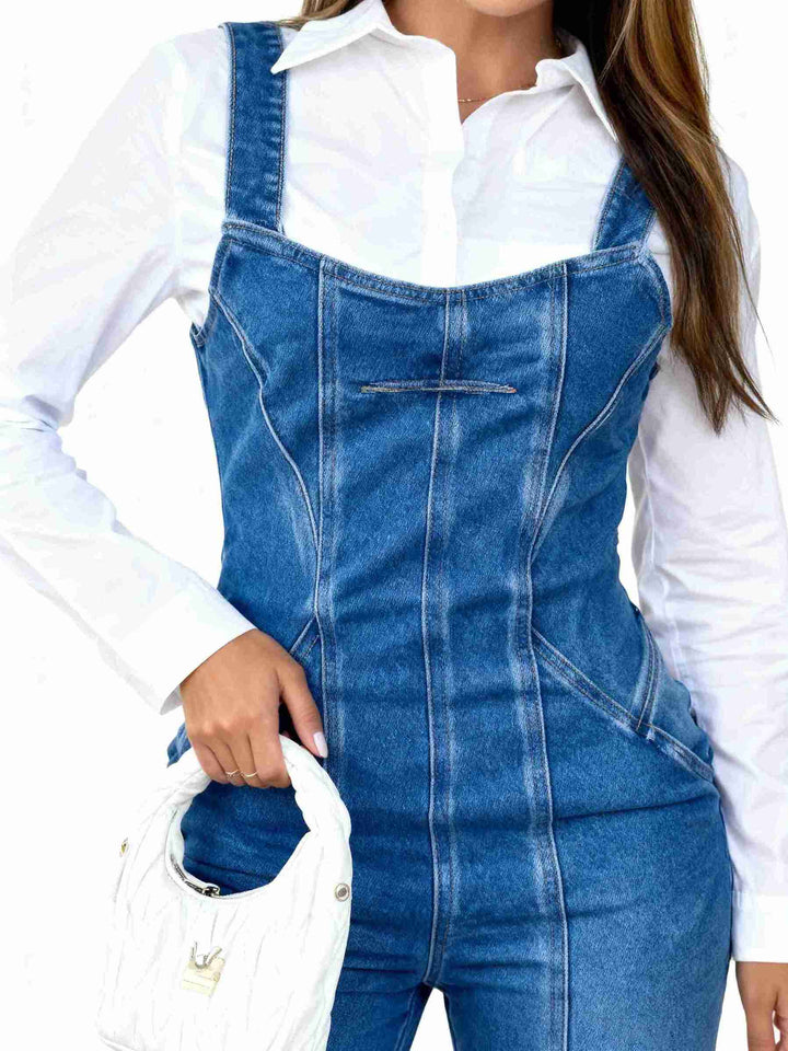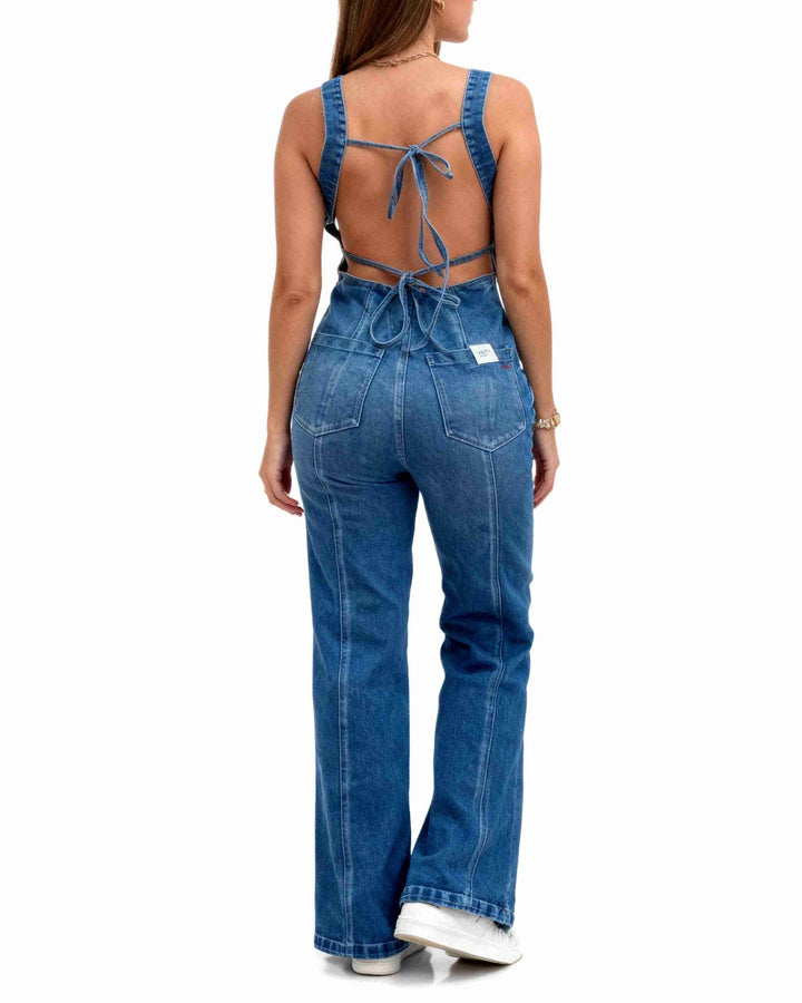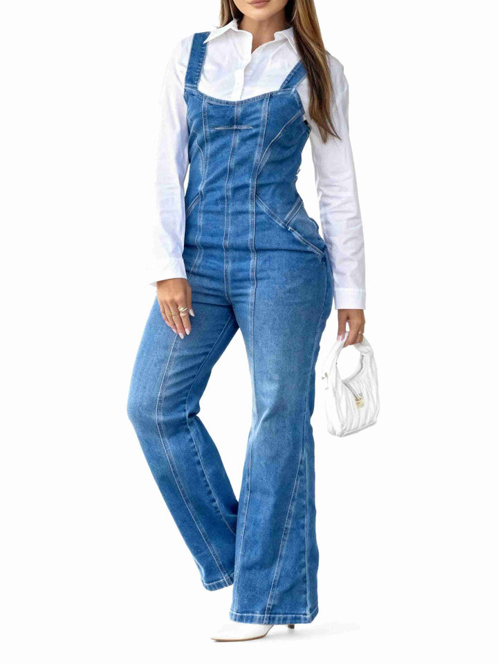 | Enterizo bota recta en denin confort stretch con Fit Ancho y Caída Elegante Para Uso Diario |