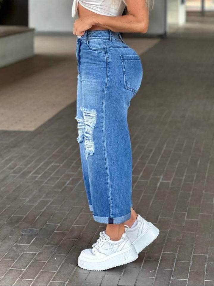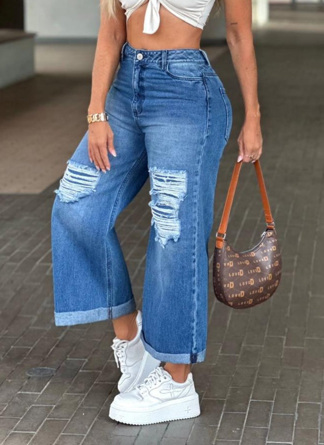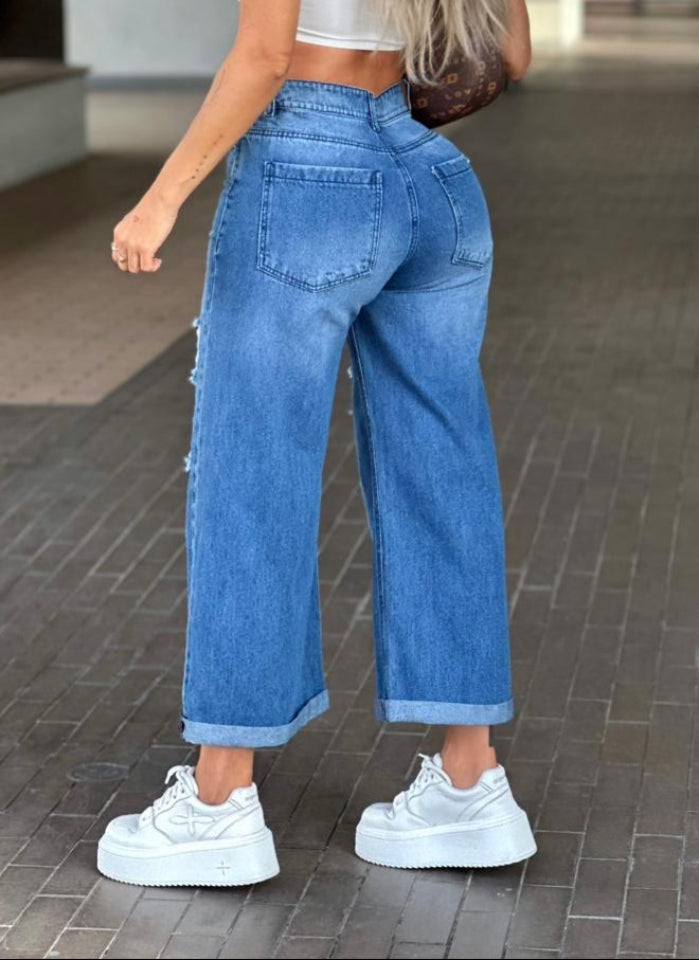 JEAN CULOTT BOTA RECTA EN DENIM RIGIDO - AS06662
