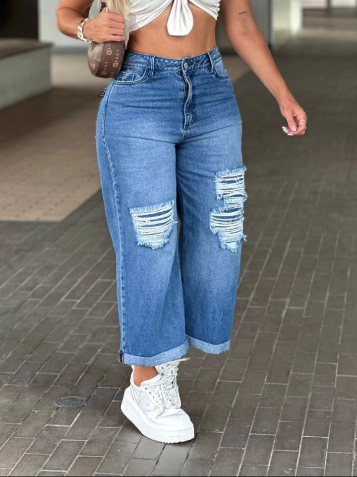Jeans CULOTTE con fit bota recta y Caída Elegante Para Uso Diario |