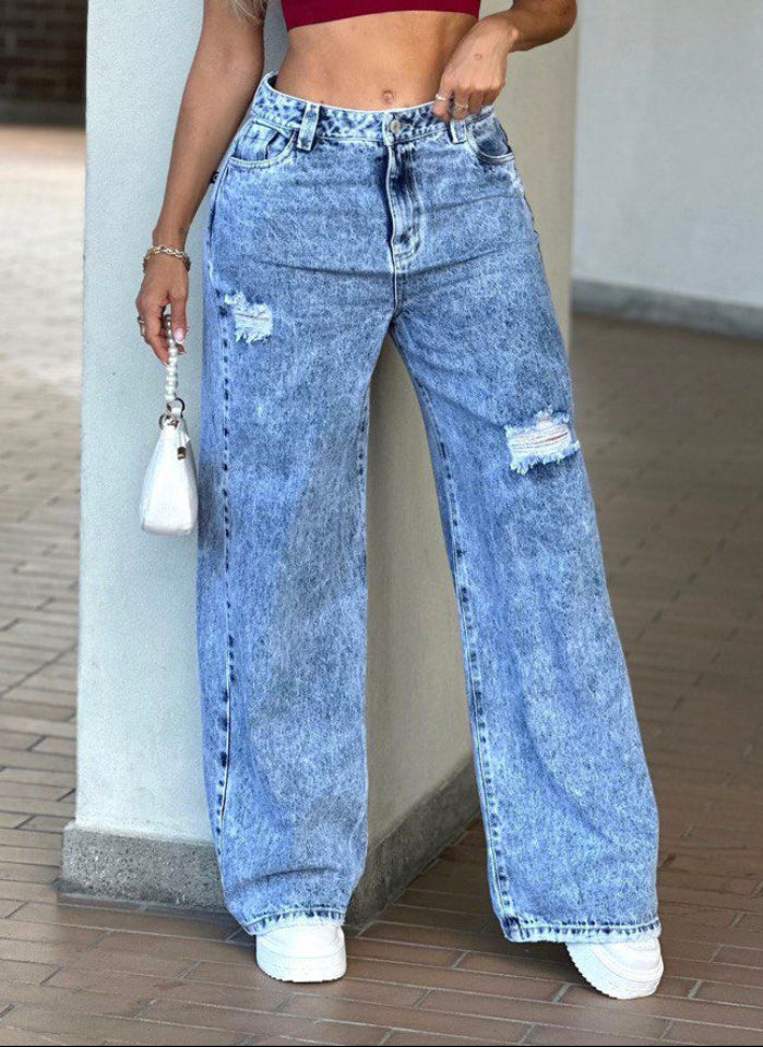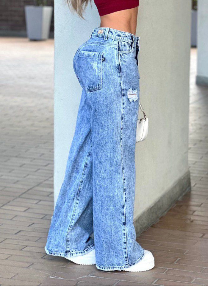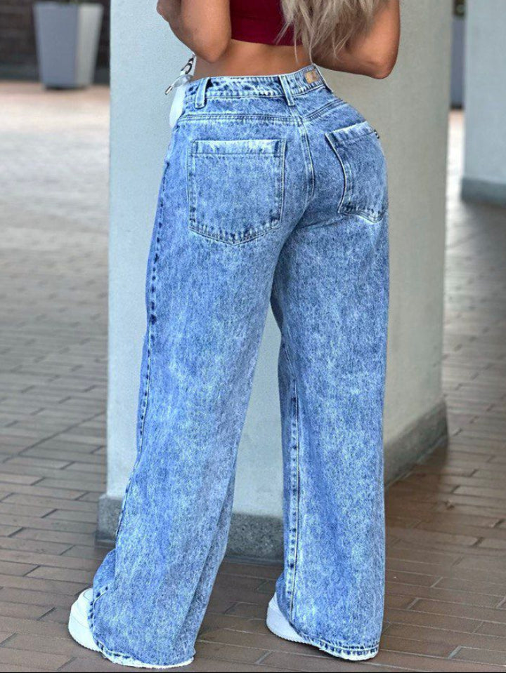 Jeans con Fit Ancho EN BOTA RECTA y Caída Elegante Para Uso Diario