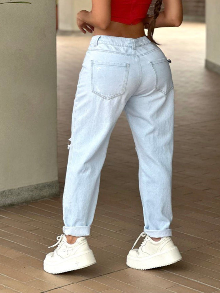 Este jean boyfriend en denim rígido presenta un delicado desgaste frontal y un tono sutil que facilita su combinación y estilo casual. TALLAS 4 a la 14