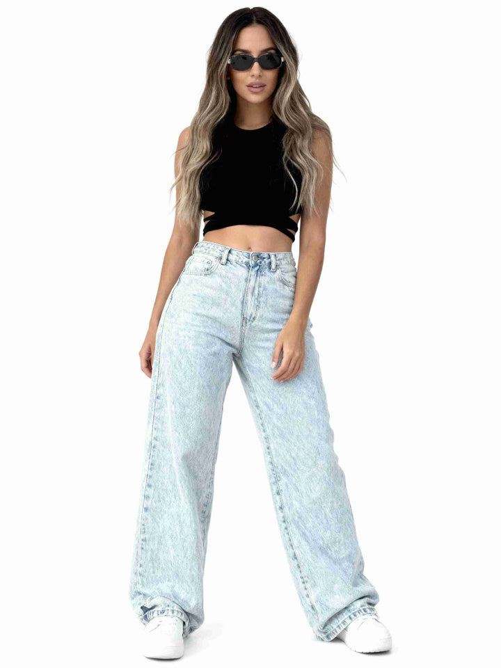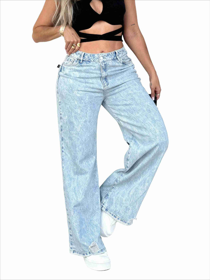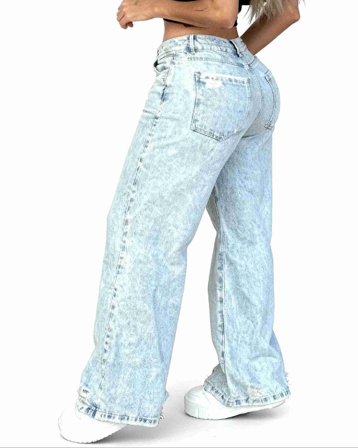 Jeans con Fit Ancho EN BOTA RECTA y Caída Elegante Para Uso Diario