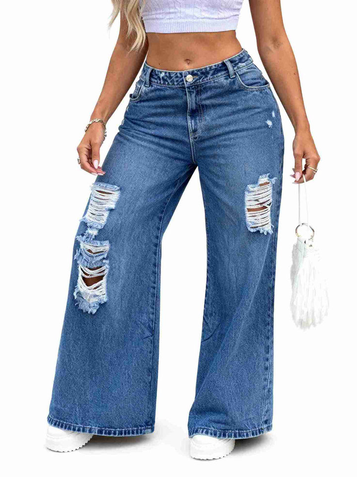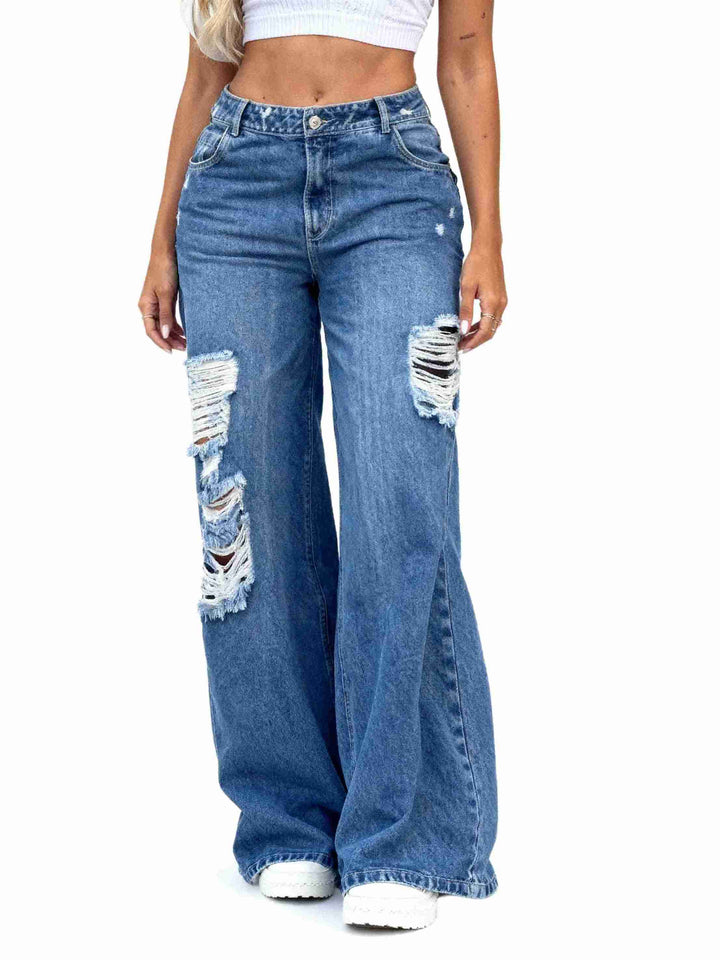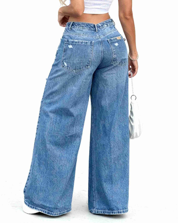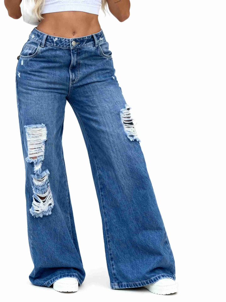 | Jeans con Fit Ancho y Caída Elegante Para Uso Diario |