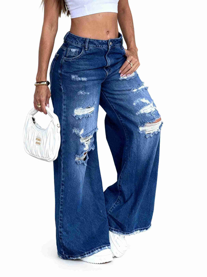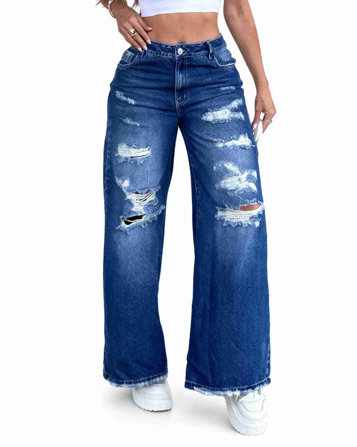 Jeans con Fit Ancho y Caída Elegante Para Uso Diario