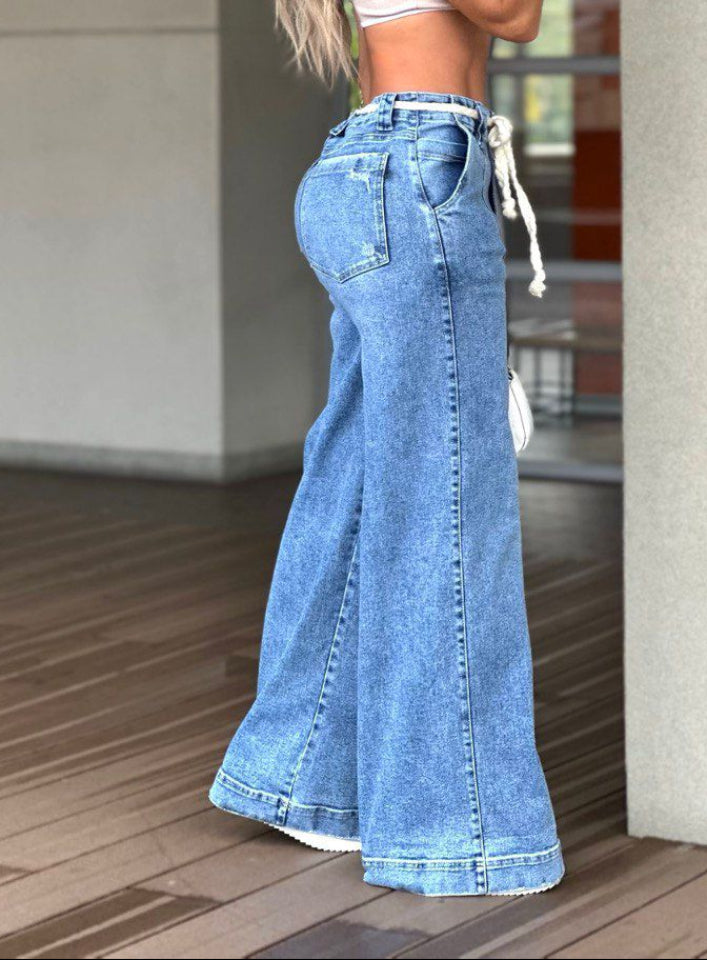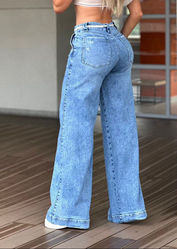 Jeans con Fit Ancho y Caída Elegante Para Uso Diario