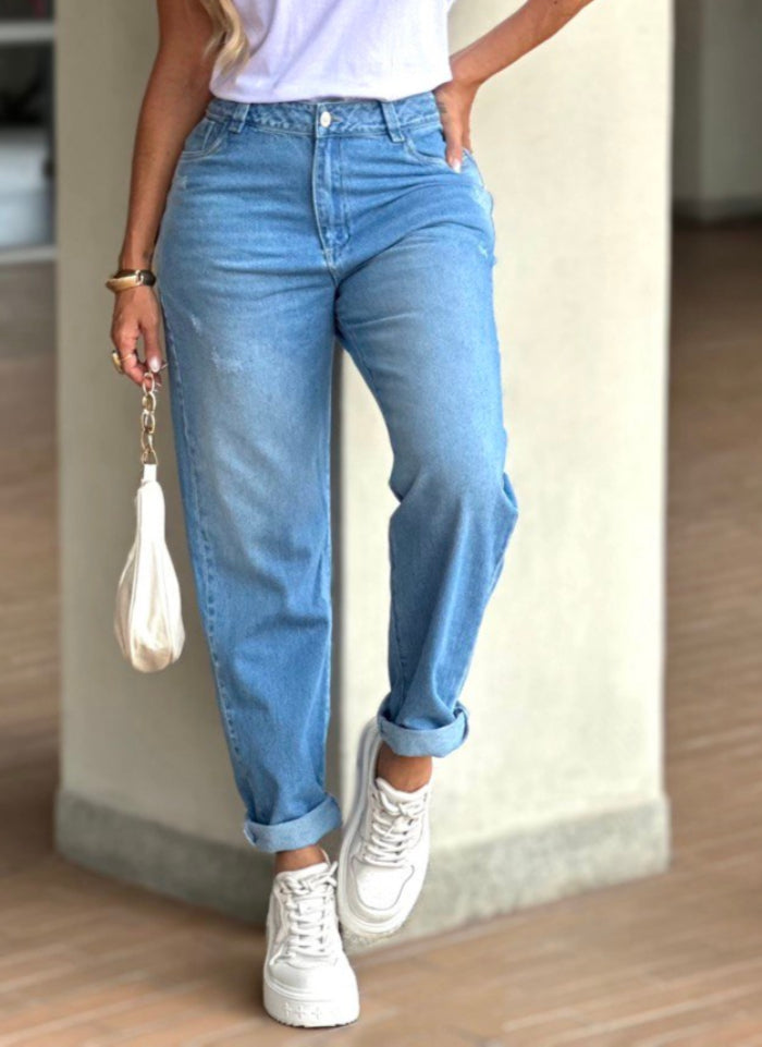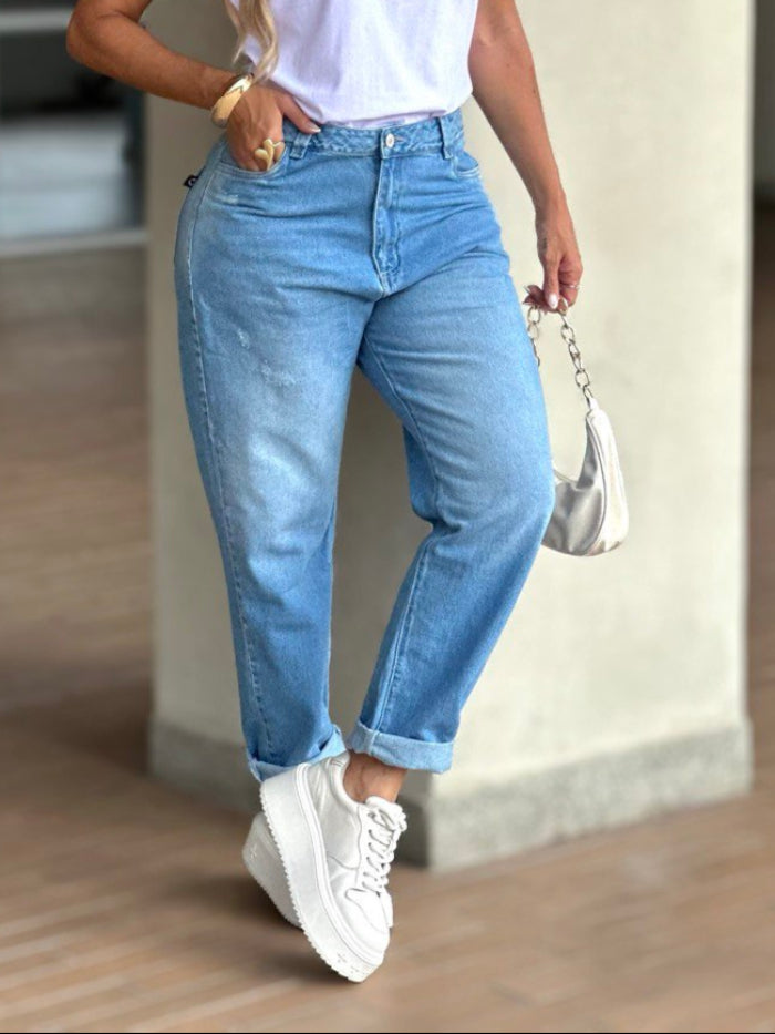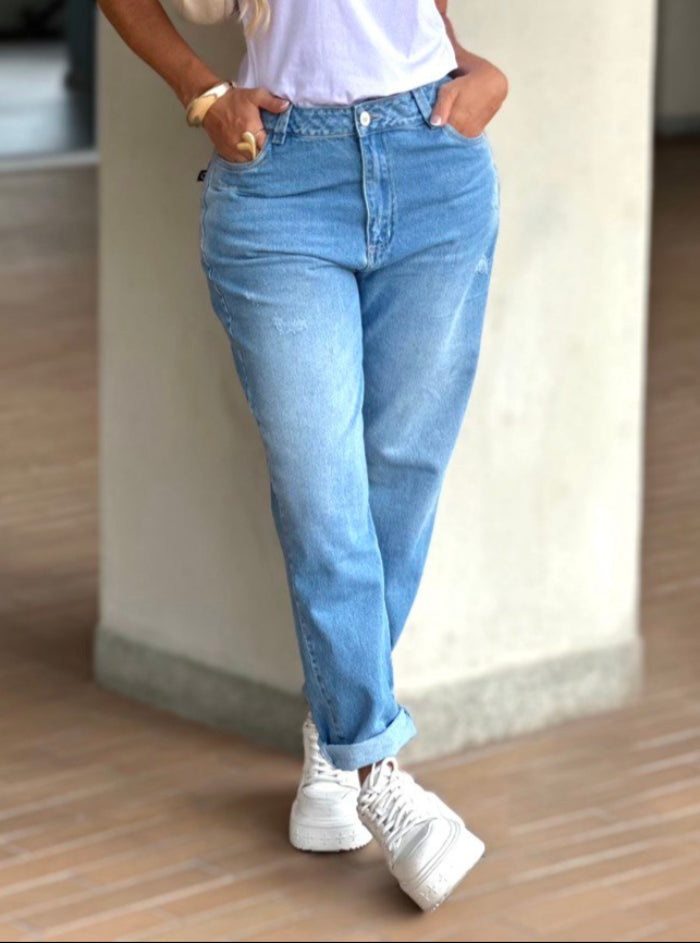 Jeans Boyfriend confeccionados en denim rígido que ofrecen un ajuste perfecto en la cintura y tiro alto, realzando tu feminidad con cada movimiento.