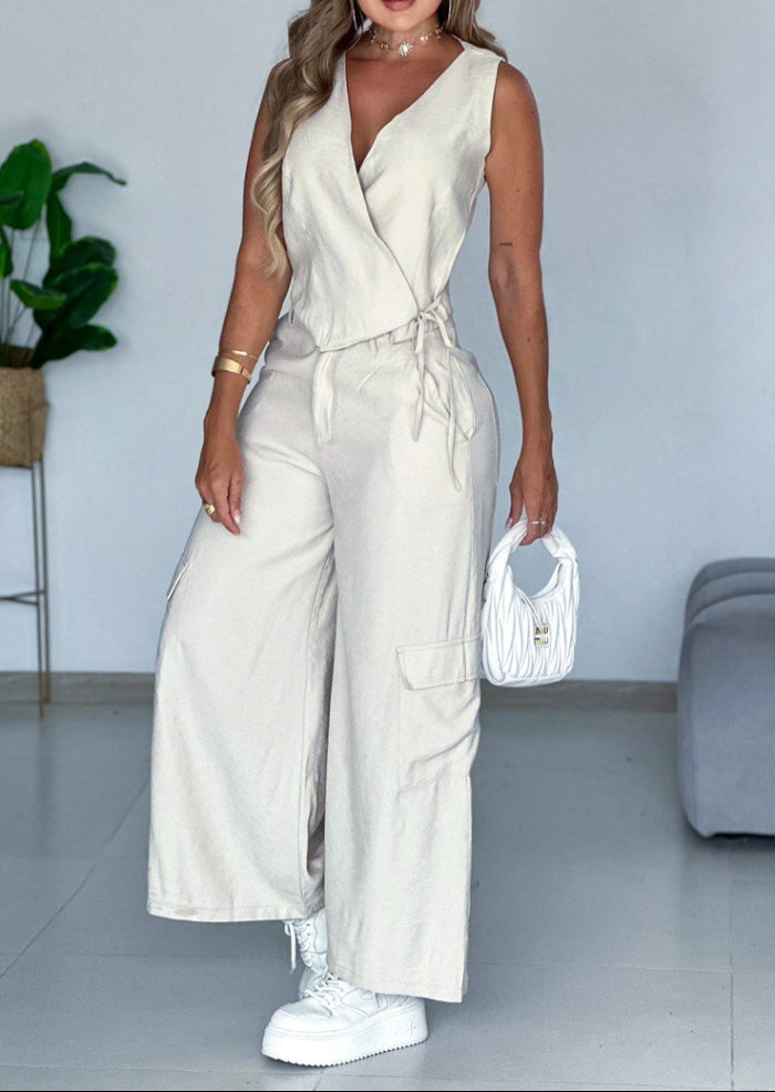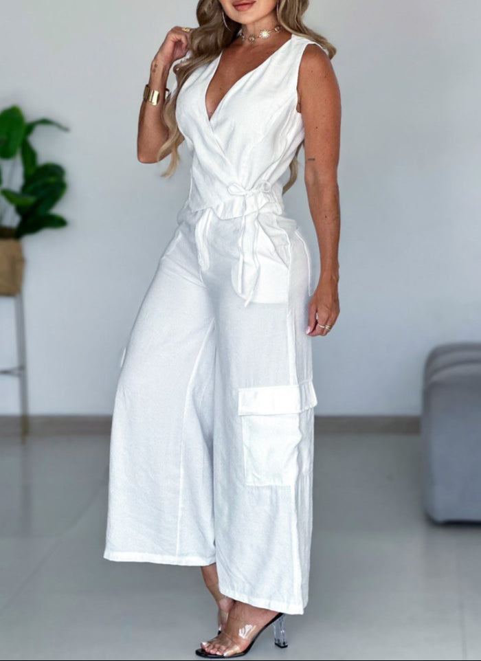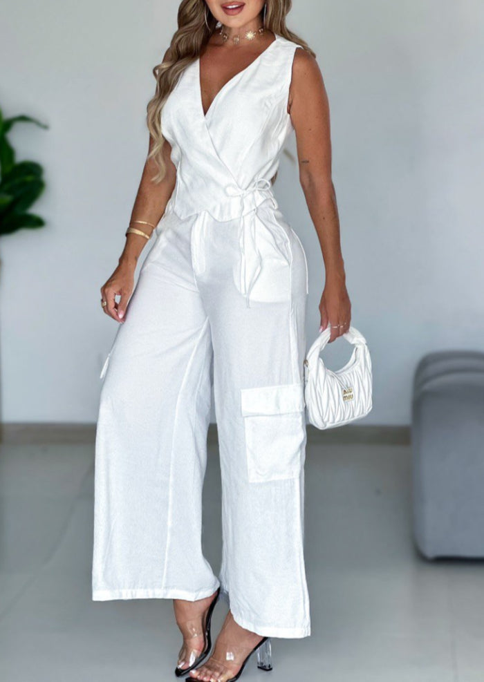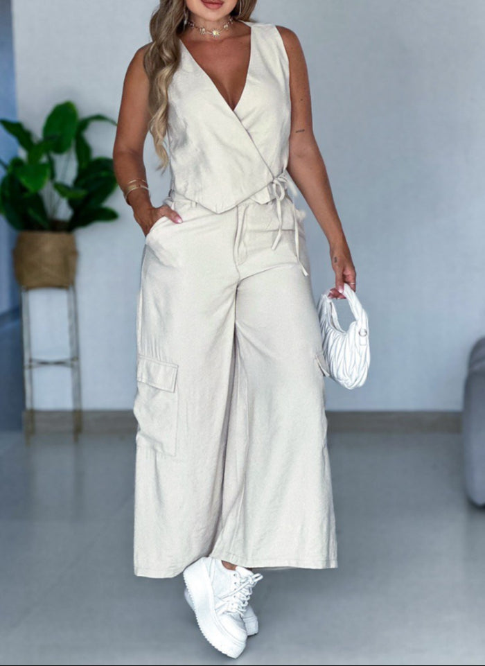 Este conjunto incluye un pantalón de pierna ancha con prácticos bolsillos y una blusa con escote, PERO SOLO TU PUEDES DETERMINAR QUE TAN ESPECIAL ES Y COMO PUEDES SENTIRTE CON ESTE GRAN CONJUNTO