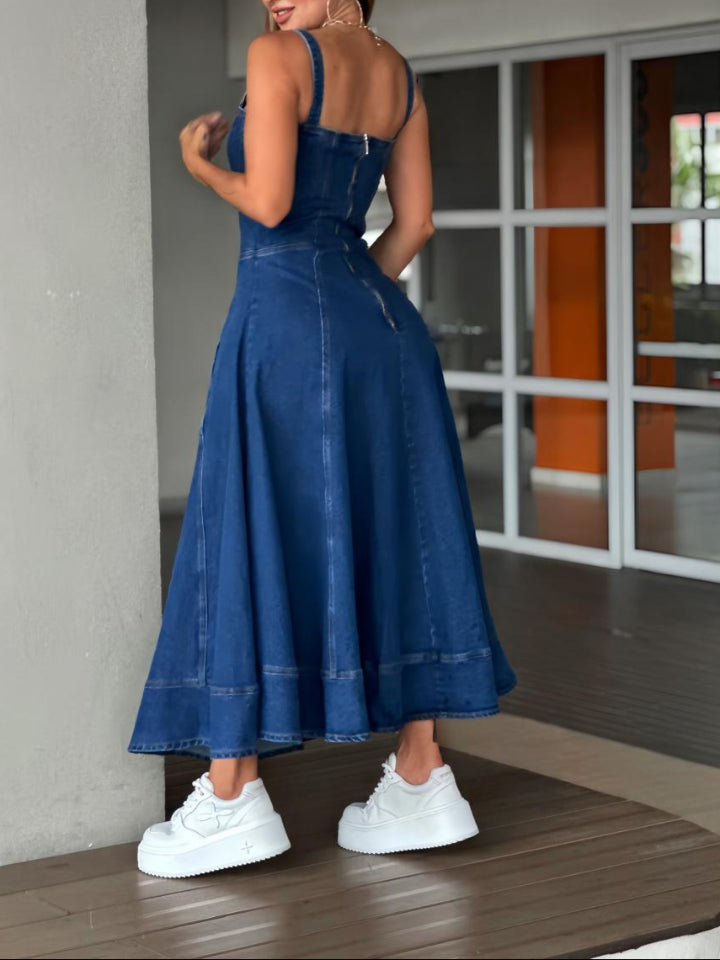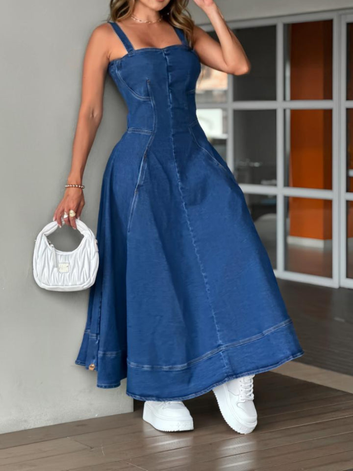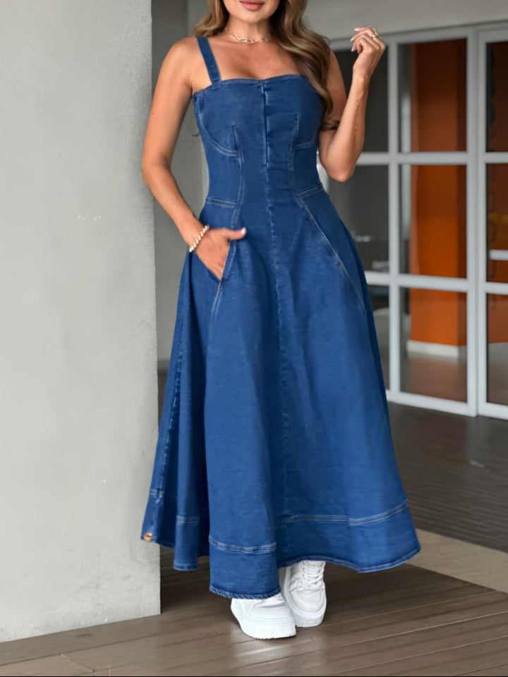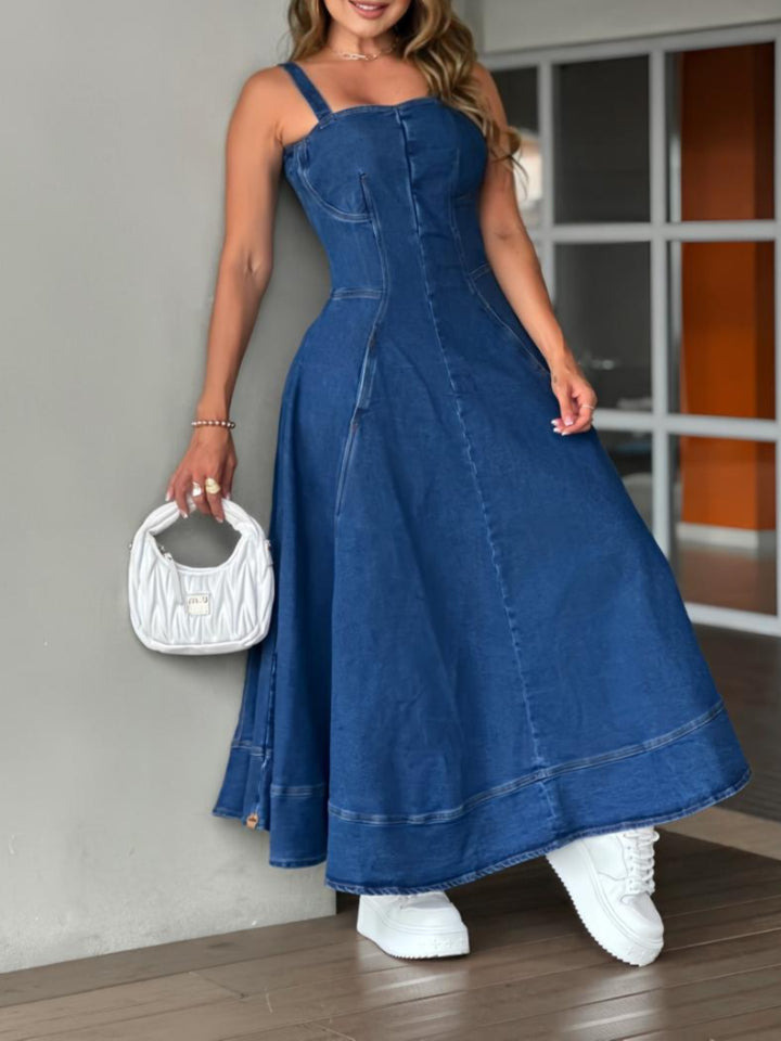 | Vestido con Fit Ancho en denim confort y Caída Elegante Para Uso Diario |