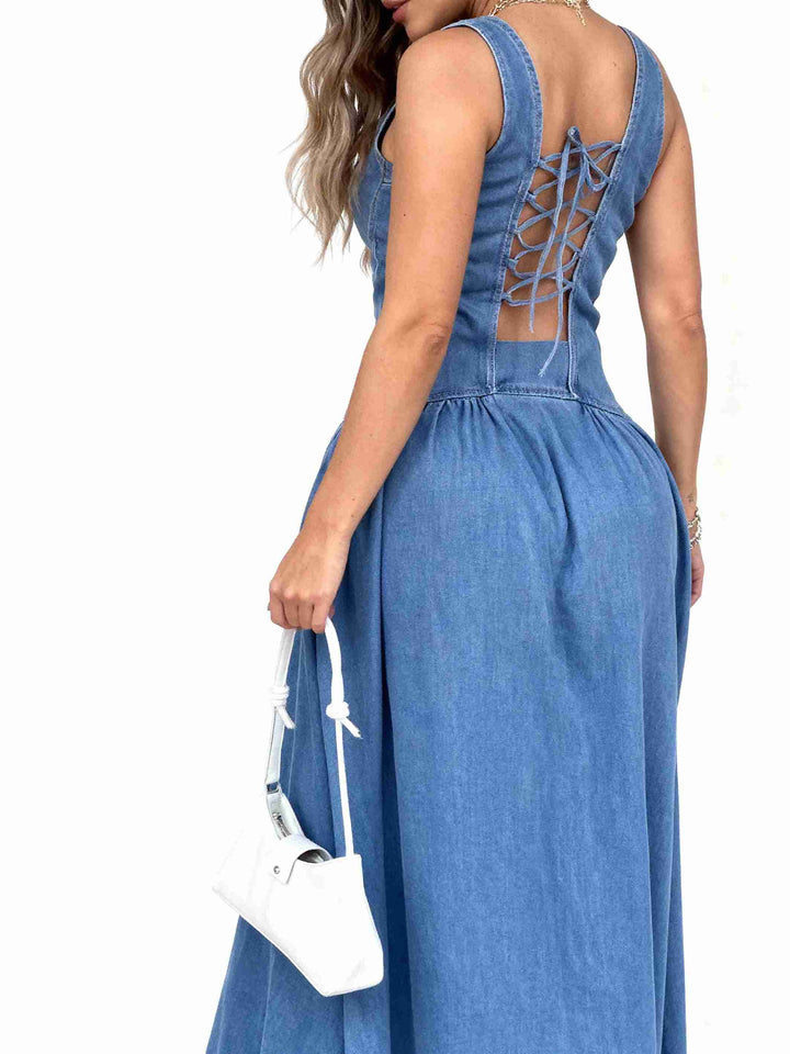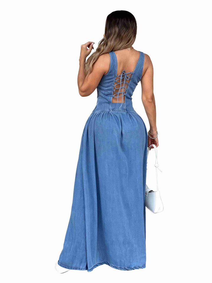 Vestido con escote posterior tiras y Caída Elegante Para Uso Diario
